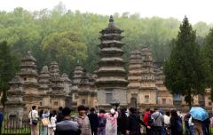 مناظر خلابة لمعبد شاولين وسط الأمطار