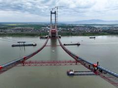 أعمال بناء جسر كبير للطريق السريع والسكة الحديدية في شرقي الصين