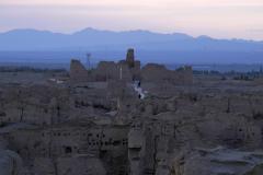 موقع أطلال مدينة جياوخه القديمة عند غروب الشمس في منطقة شينجيانغ الصينية