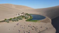 الصورة: منطقة جبل مينغشا وبقعة الهلال الربيعي الخلابة في دونهوانغ