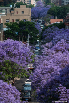 أزهار الجاكاراندا تتفتح بالكامل في كونمينغ بجنوب غربي الصين